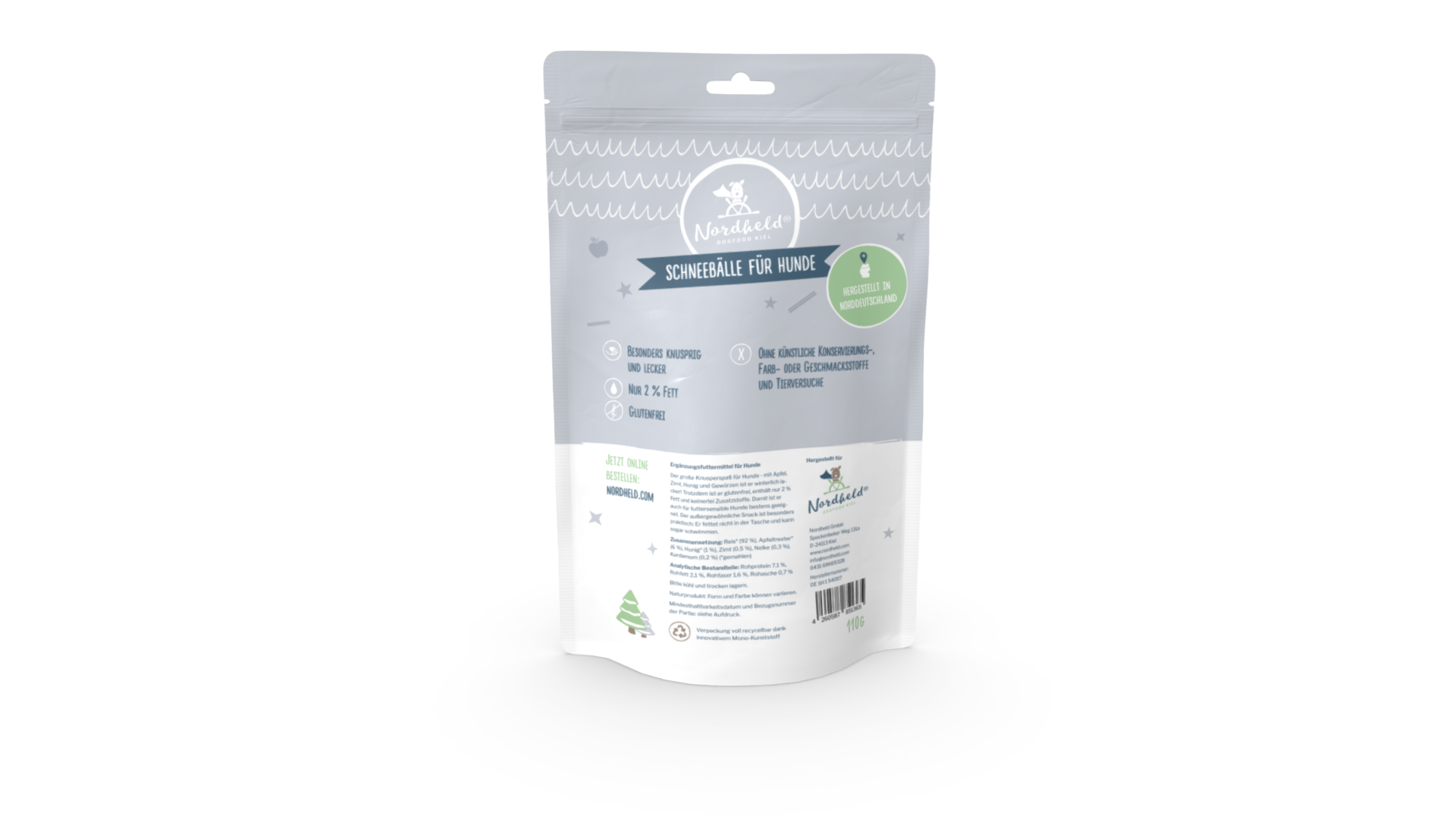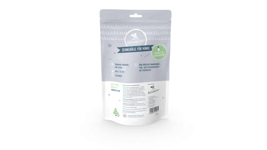 Der große Knusperspaß für Hunde - mit Apfel, Zimt, Honig und Gewürzen ist er winterlich lecker! Trotzdem ist er glutenfrei, enthält nur 2 % Fett und keinerlei Zusatzstoffe. Damit ist er auch für futtersensible Hunde bestens geeignet. Der außergewöhnliche Snack ist besonders praktisch: Er fettet nicht in der Tasche und kann sogar schwimmen.